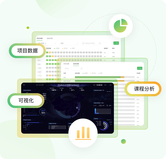 從培訓項目數據、員工學習檔案、平臺數據大屏,可視化、可導出的數據助力企業評估培訓效果,調整培訓計劃。